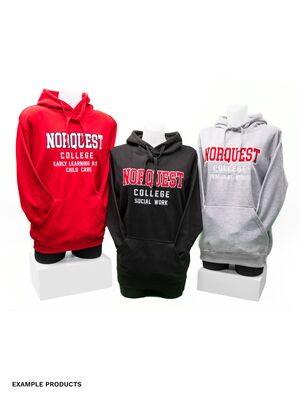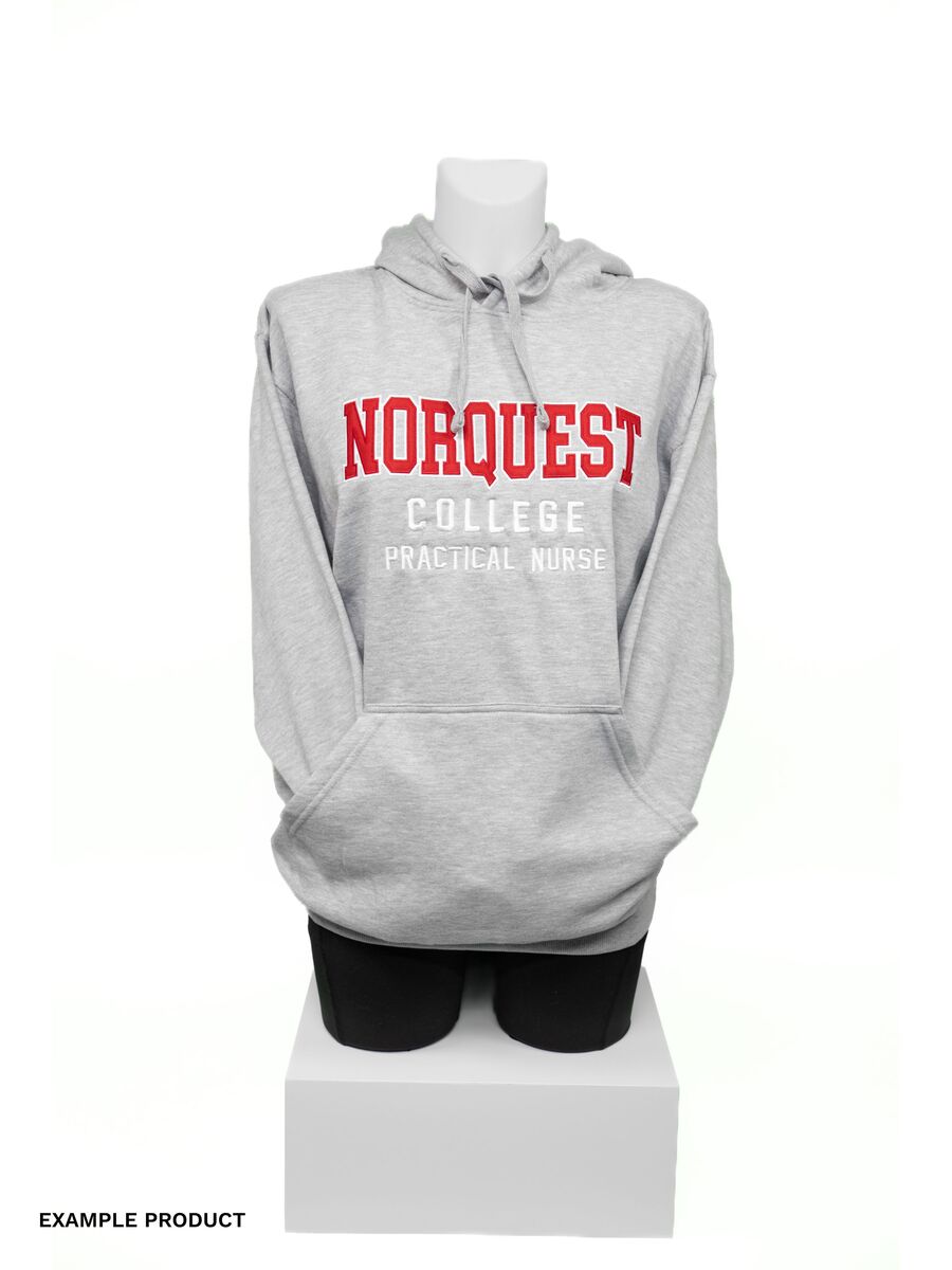 Now you can rep NorQuest and the program that’s shaping your path. Our varsity hoodie features a bold two-colour twill appliqué in classic college lettering, customized with program embroidery for a meaningful, made-to-order touch. Comfortable, stylish, and authentically NorQuest—perfect for everyday wear on campus or beyond.